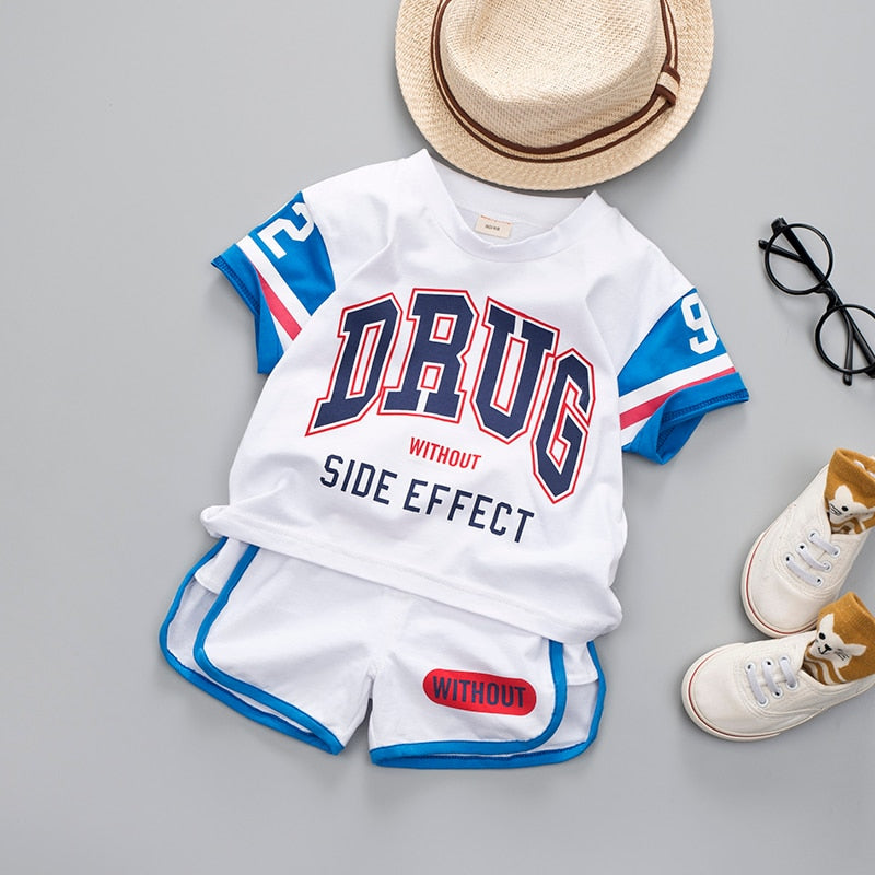 Department Name: ChildrenItem Type: SetsStyle: FashionMaterial: Spandex,CottonGender: BoysSleeve Length(cm): ShortPattern Type: LetterCollar: O-NeckSleeve Style: REGULAROuterwear Type: CoatClosure Type: PulloverFit: Fits true to size, take your normal sizeBrand Name: KabeierThe price including: Shirt + Pants = 2pcsSeason: SummerSuitable: 1 2 3 4 Toddler Boy Clothing